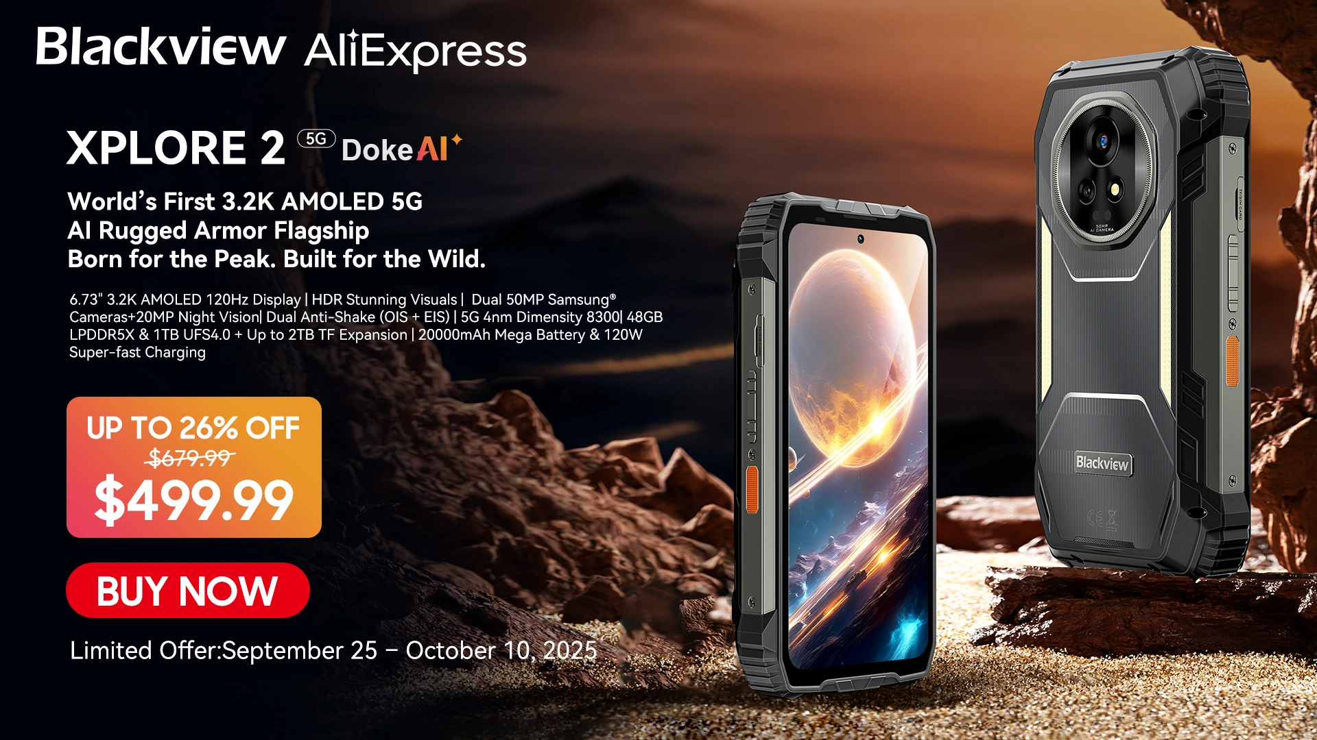 Save $180 for 16 Da ys! The World's First 5G AI Rugged Flagship with a 3.2K HDR AMOLED Eye-Care Display—Blackview XPLORE 2 Officially Launched Globally!